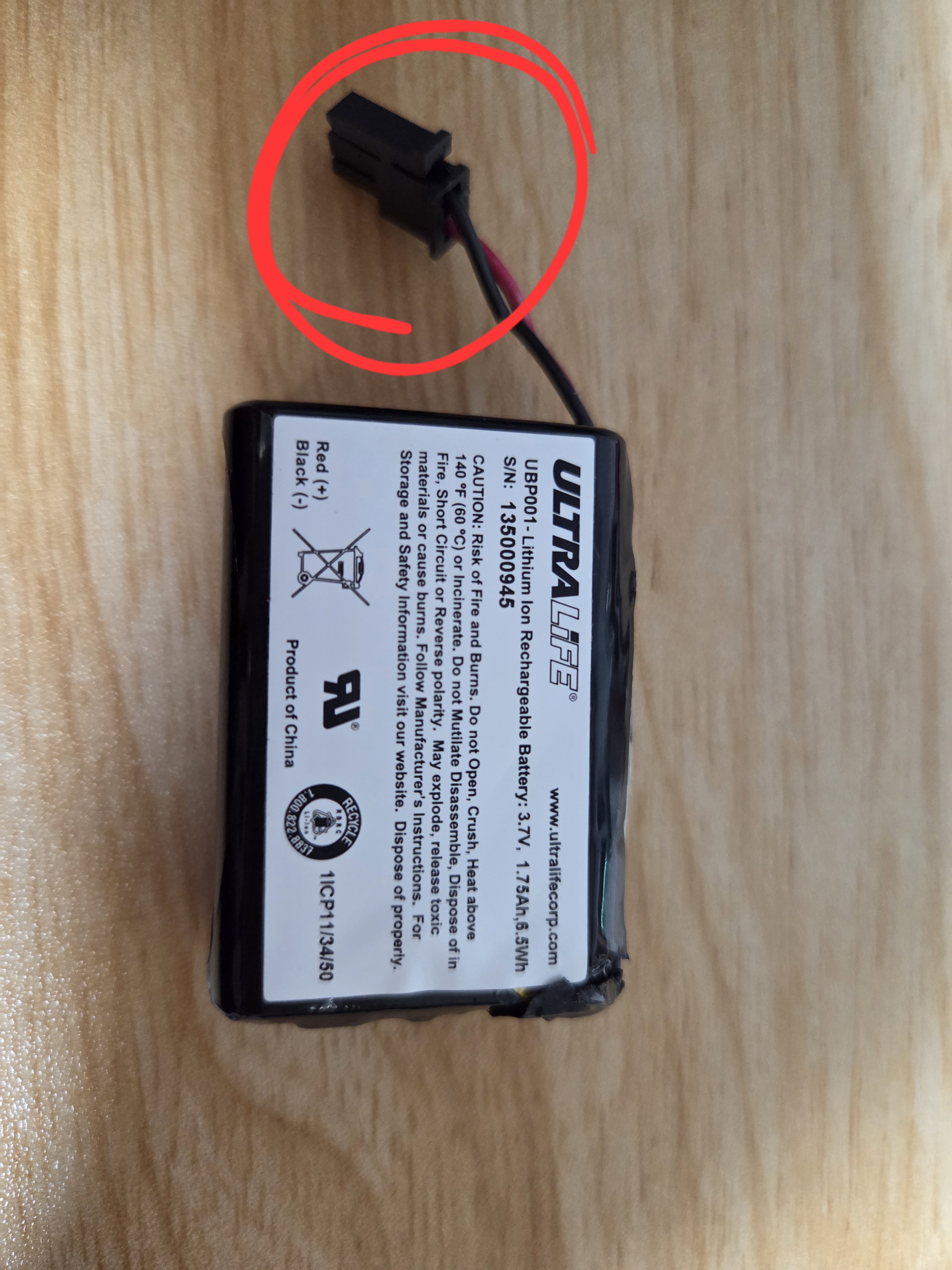 3.7V, 1750mAh 리튬이온 충전지 2개가 붙어있는데 가로 4.5cm 세로 3.5cm 규격입니다.